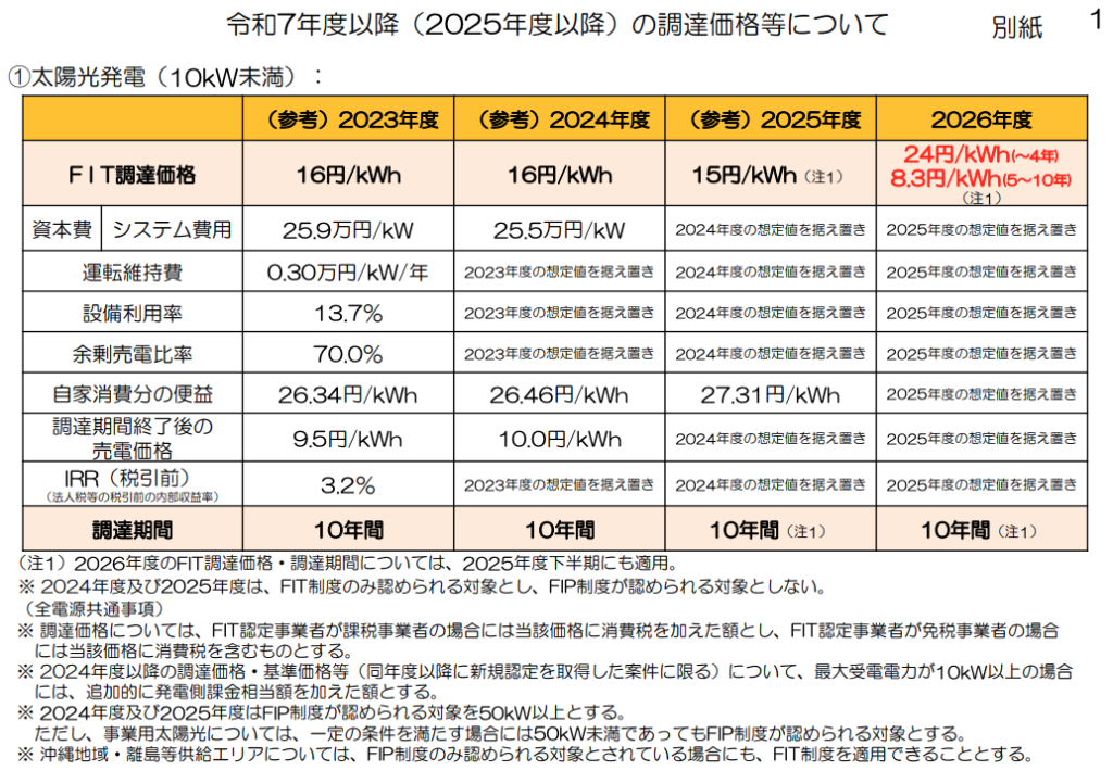 経産省は、太陽光パネルの設置費用や電気代を加味して、今も昔も同じメリット(IRR3.2%)が得られるように売電価格を設置するからです。